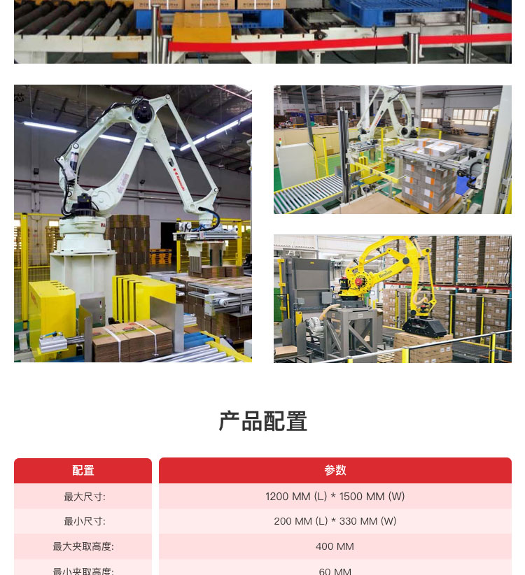 介紹:頂升抓取機構帶有置中、疊包功能,可配合前疊包平衡碼垛效率;專業(yè)設計的紙板夾具帶有鉤,可夾取放置一層或兩層紙箱防掉落;機器人采用四軸式Kawasaki機械手臂兼顧性能與成本,將紙箱按自定義的垛型自動碼放到托盤上。 產(chǎn)品別稱:紙箱碼垛機械手、自動流水線紙箱碼垛機、紙箱碼垛、機器人紙箱碼垛、紙箱碼垛機器人