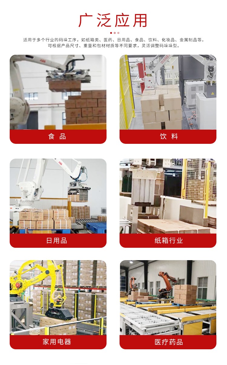小型機(jī)械手碼垛機(jī)是一種智能化包裝設(shè)備,通常由機(jī)械手臂、控制系統(tǒng)、傳感器和夾具組成。它可以根據(jù)預(yù)設(shè)程序自動抓取、碼垛和放置不同形狀和尺寸的產(chǎn)品,實(shí)現(xiàn)、精準(zhǔn)的包裝操作。這種機(jī)器人碼垛機(jī)適用于小規(guī)模生產(chǎn)線或空間有限的場所,能夠提高生產(chǎn)效率,降低人力成本,并確保包裝質(zhì)量的一致性和穩(wěn)定性。由于其靈活性和智能化特點(diǎn),小型機(jī)械手碼垛機(jī)在多個(gè)行業(yè),如紙箱、食品、醫(yī)藥等領(lǐng)域得到廣泛應(yīng)用。