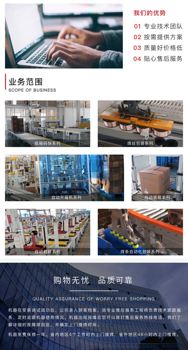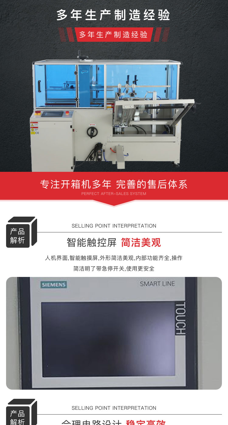介紹:電商開箱機(jī)WRK-30H15紙箱成型機(jī)(也稱開箱機(jī))為專門為電商行業(yè)打造的紙箱快速成型的機(jī)器,開箱速度達(dá)15箱/分,能夠解決電商旺季打包數(shù)量多,包裝慢的問題,改設(shè)備可同時(shí)配套稱重貼標(biāo)掃碼等設(shè)備使用,能自動(dòng)接入倉儲(chǔ)系統(tǒng),方便用戶使用。 產(chǎn)品別稱:全自動(dòng)開箱機(jī)、高速開箱機(jī)、立式開箱機(jī)、臥式開箱機(jī)、電商開箱機(jī)、快遞開箱機(jī)、伺服開箱機(jī)、紙箱開箱機(jī)